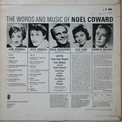 1. Cyril Ornadel And His Theatre Orchestra   -   The Words And Music Of Noel Coward Overture