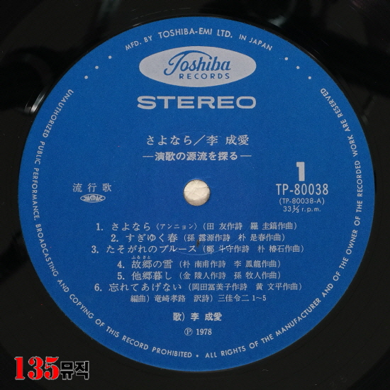 ·¹ÀÌºí  : 78 TOSHIBA EMI - TP-80038