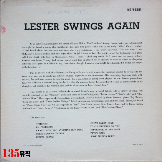 Drums – Bill Clark, J.C. Heard, Jo Jones